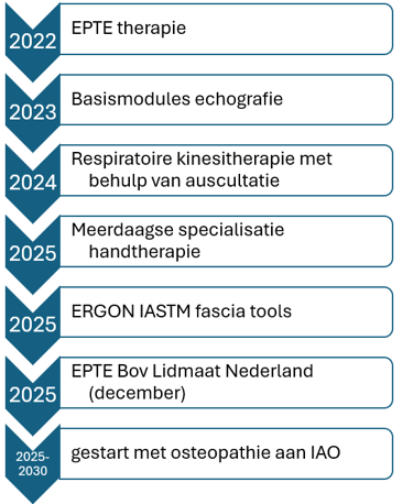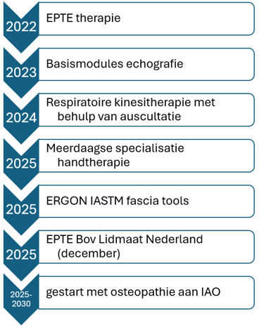 Op de planning: cursus dry needling en manuele therapie zodat ik mijn patiënten nog gerichter en effectiever kan behandelen.