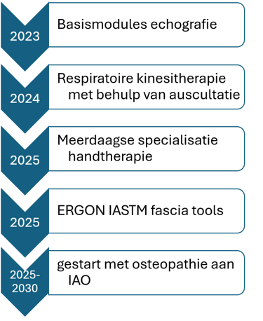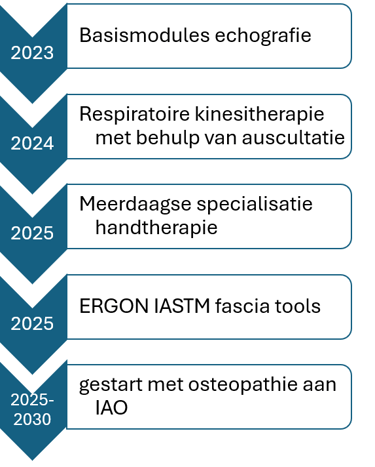 Op de planning: cursus dry needling en manuele therapie zodat ik mijn patiënten nog gerichter en effectiever kan behandelen.